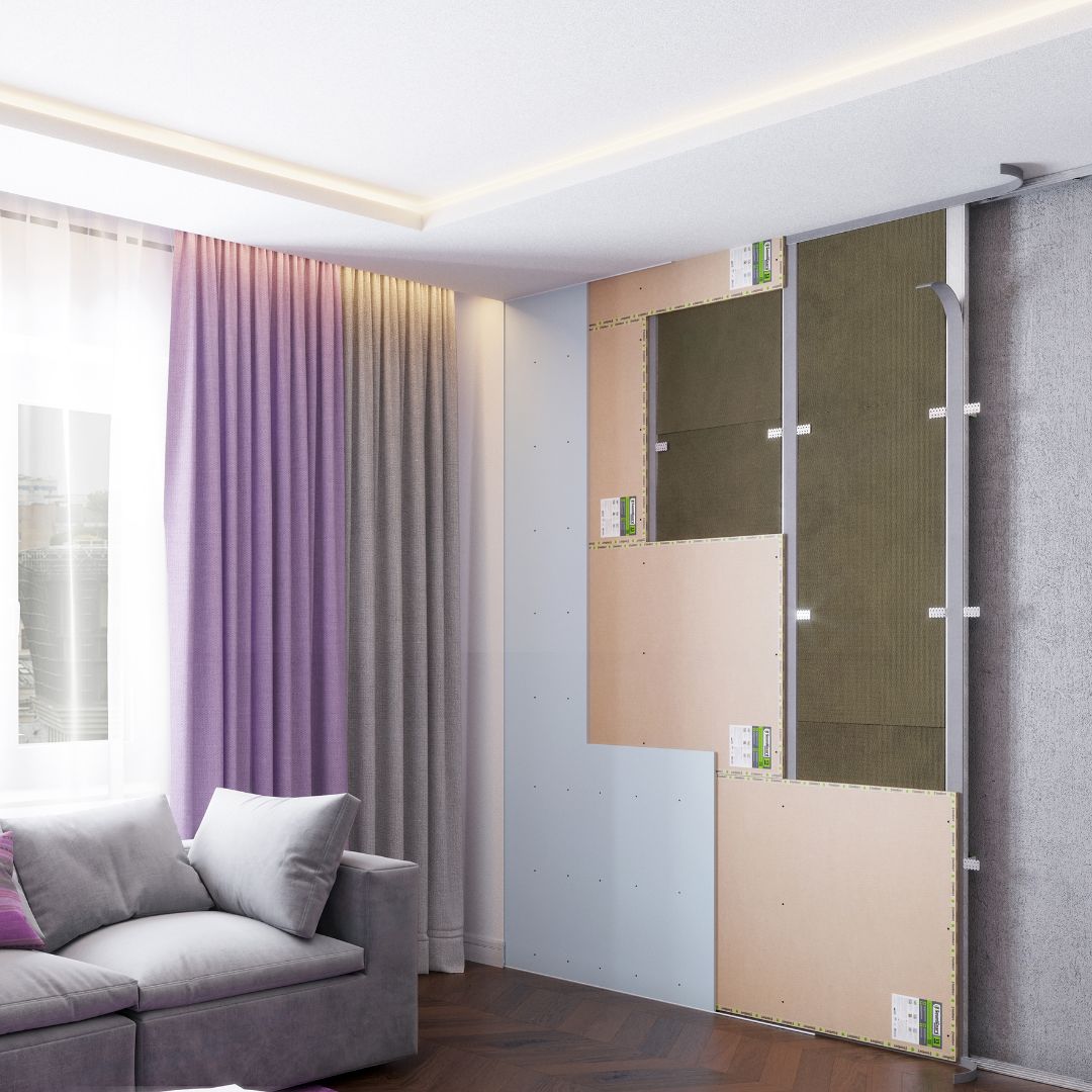 Толщина тонких, бескаркасных решений от 3 см до 5 см. Применяем звукоизоляционные панели с кварцевым песком ЭкоЗвукоИзол, профессиональные демпферные подложки, звукоизоляционные подрозетники.